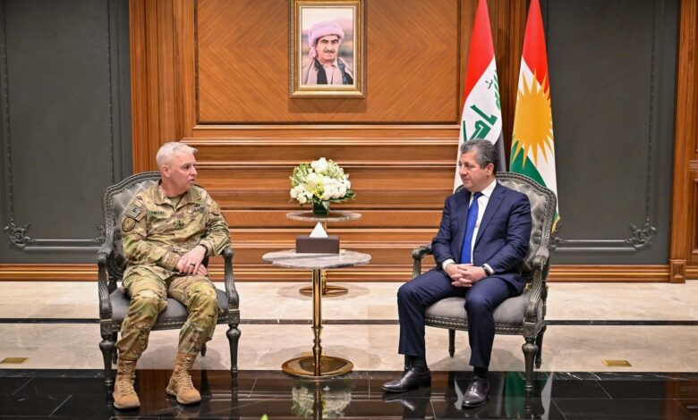 في تحرك أمني مهم، بحث رئيس حكومة إقليم كوردستان مسرور بارزاني، اليوم، مع القائد العام لقوات التحالف الدولي في العراق وسوريا كيفن لامبرت، مستجدات الأوضاع في الإقليم والعراق والمنطقة.